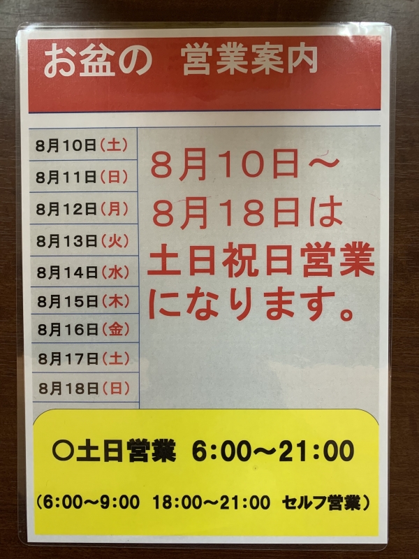 8/10〜8/18日までお盆期間は全て祝日扱いとなります。