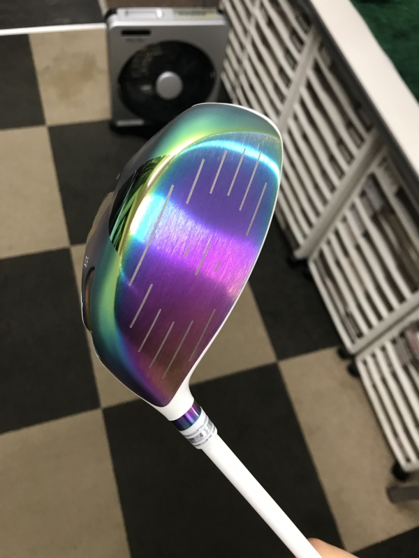 女性向けのカスタムクラブで、白色のクラウンに、ソールやフェースは鮮やかな虹色🌈、シャフトも5色のカラーから選べるだけでなく、硬さLのシャフトを更に4段階に分けて細かく対応。